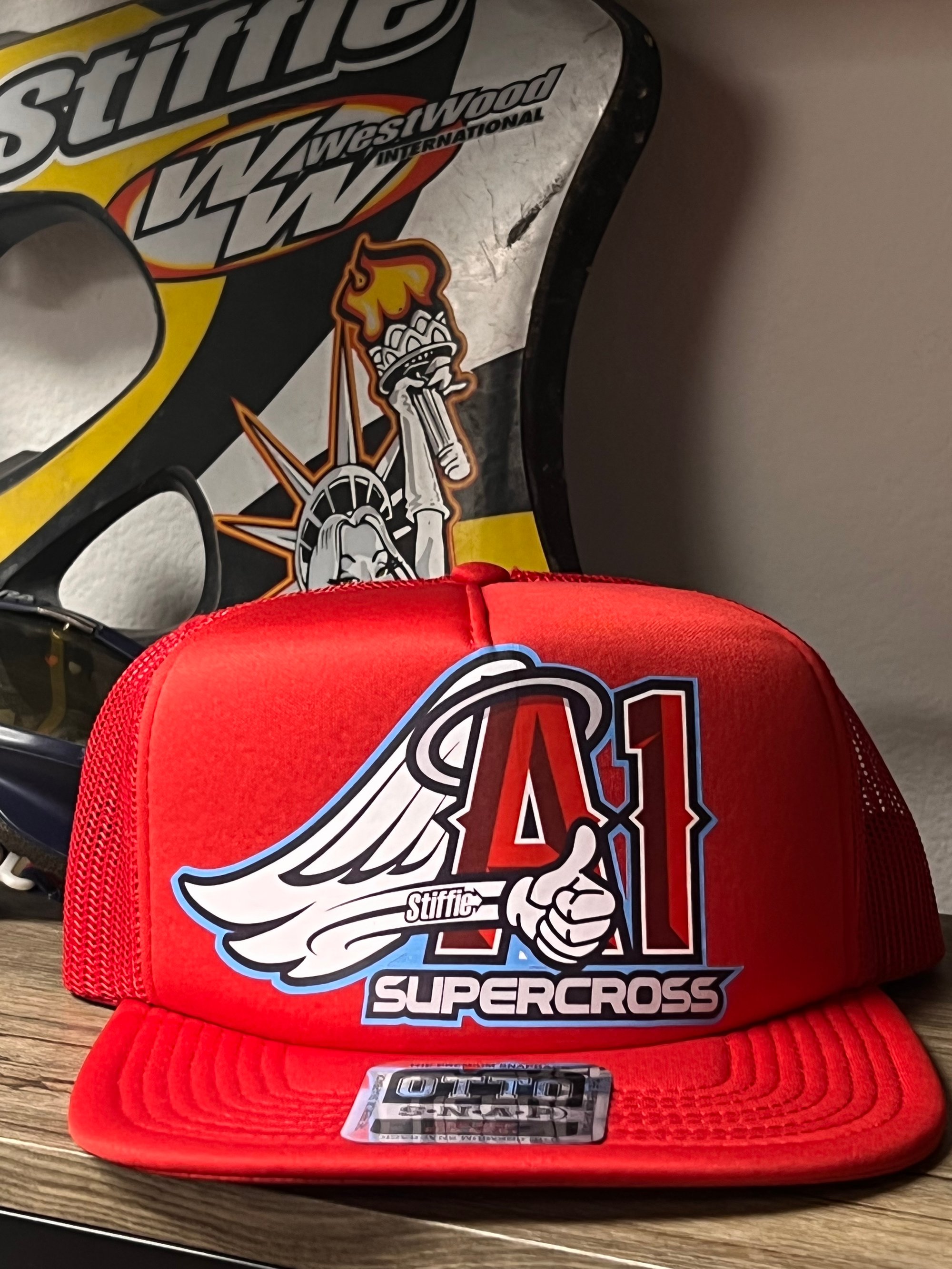If you are headed to Anaheim 1 or 2 this year then you ned to rock this limited edition, sweet ass funk A1SX Stiffie cap. It'll be like takin' a swig of moto shine when you slip this bad ass lid over your swollen melon. If you sport this mutha trucker in the pits you just might hit a home run with Danny Strange's sister in the back of his box van.
